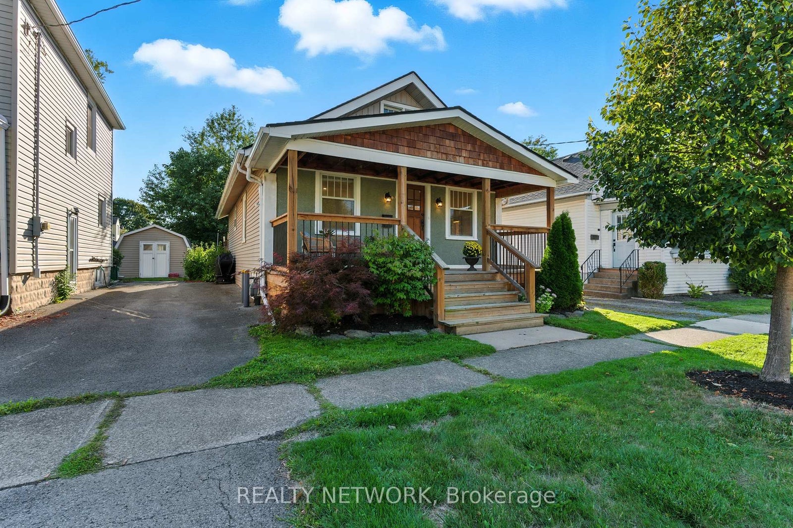 Welcome to the west end of St. Catharines where convenience meets charm. Just a short stroll from the GO Station and Ridley College, this beautifully updated two bedroom home offers easy access to parks, shops, restaurants, and transit.Step onto the wide front porch, the perfect spot to start your morning with coffee or unwind in the evening with a drink. Inside, the open concept layout is bright and inviting, featuring a refreshed kitchen with modern appliances, stylish lighting, and engineered hardwood floors that flow throughout.The renovated bathroom and fresh finishes give the home a clean, contemporary feel, while thoughtful updates make it completely move in ready.Out back, a private deck invites summer BBQs and quiet relaxation. A detached single garage and a deep yard provide practical space without the upkeep. Families will love the nearby playground, and downtown amenities including the Meridian Centre, Performing Arts Centre, and Fourth Avenue shopping are only minutes away.With non smoking ownership, a serviced furnace, and quick access to the 406, this home blends comfort and convenience in one of the city's most desirable areas. Ideal for first time buyers or anyone seeking a simple, stylish place to call home.